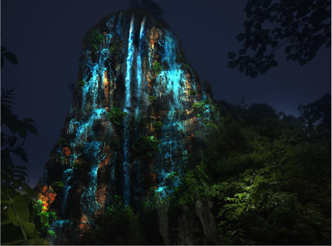 貴州六盤水朗岱山瀑布投影秀,項目位貴州省貴陽市六盤水郎岱山鎮(zhèn),使用我公司9臺15000LM戶外矩陣投影機(jī),在山體上投影瀑布效果。結(jié)合聲光電給人帶來一場視覺盛宴。